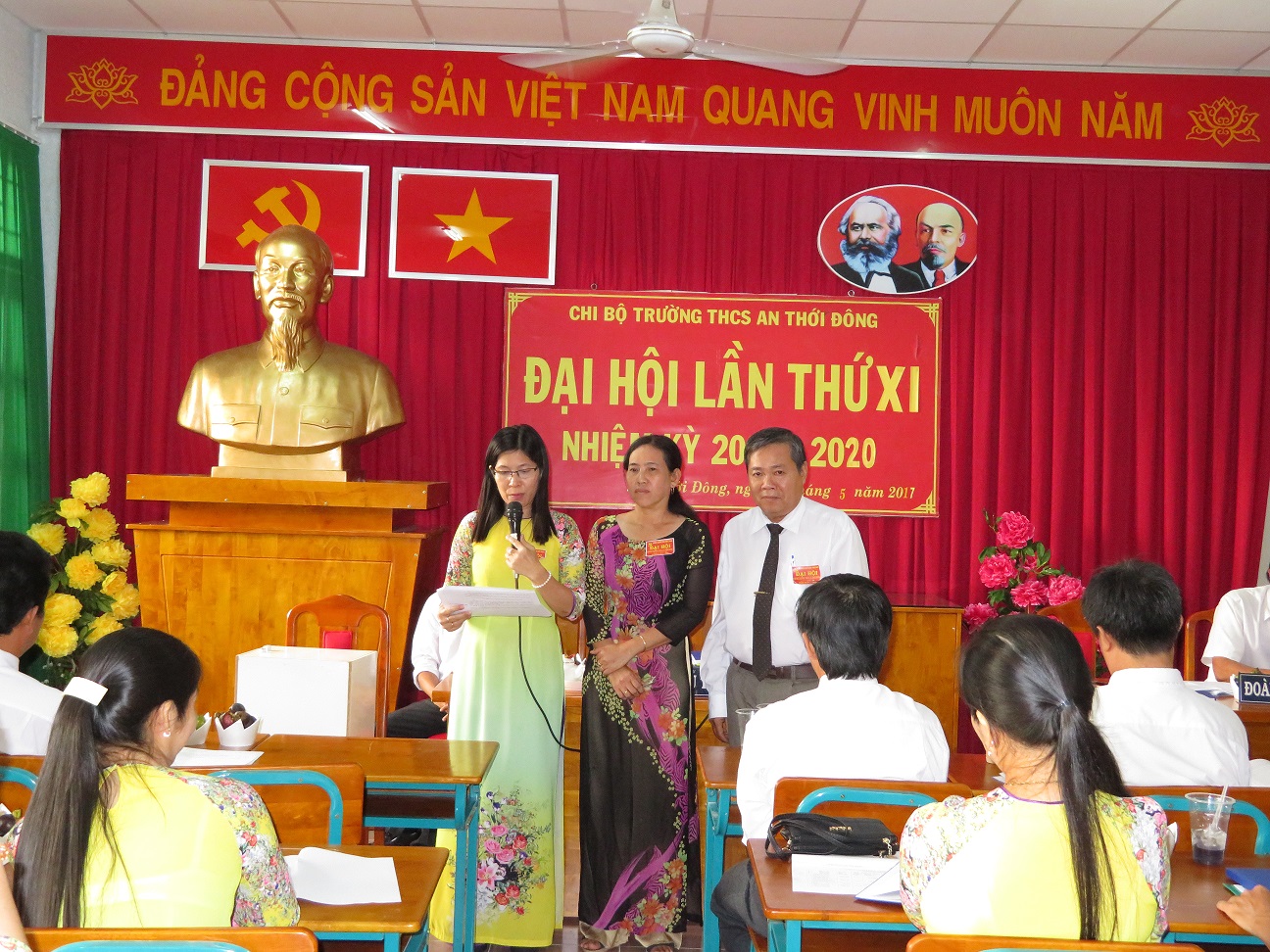 Sau thời gian tích cực chuẩn bị văn kiện, nhân sự và các điều kiện khác cơ bản bảo đảm đạt yêu cầu. Hôm nay 29 - 5 - 2017 Chi bộ trường THCS An thới Đông long trọng tổ chức Đại hội đảng viên nhiệm kỳ 2017-2020. Đại hội lần này nhằm đánh giá kết quả thực hiện Nghị quyết nhiệm kỳ 2015-2017 và đề ra phương hướng, nhiệm vụ nhiệm kỳ 2017-2020; đồng thời bầu Ban Chi ủy, Bí thư, Phó Bí thư Chi bộ. Đây là đợt sinh hoạt chính trị sâu rộng, quan trọng, gắn liền với kỷ niệm các ngày lễ lớn và sự kiện chính trị quan trọng của đất nước trong năm 2017.